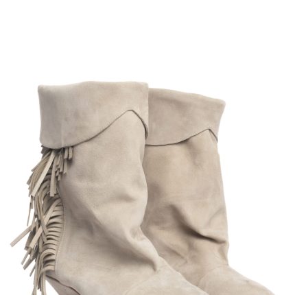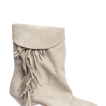 GISEL MOIRE BOOTS -Ariana sand suede fringe ankle boots