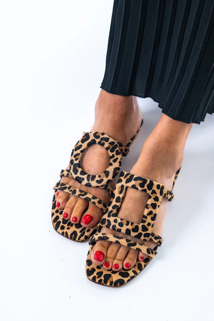 The Solace Leopard sandals are a whisper of rebellion wrapped in elegance. Wild as a jungle dream and soft as a fading summer memory, they balance the bold allure of leopard cowhide with the quiet embrace of a caramel-hued insole. Together, they tell a story of contrast—of wilderness tamed and softness unbound.They call to the femme fatale in her little black dress, the bohemian wandering through markets at twilight, the bold minimalist who craves a single statement piece. These sandals belong to the daring, the free-spirited, the women who know that leopard isn’t a print—it’s a mindset.