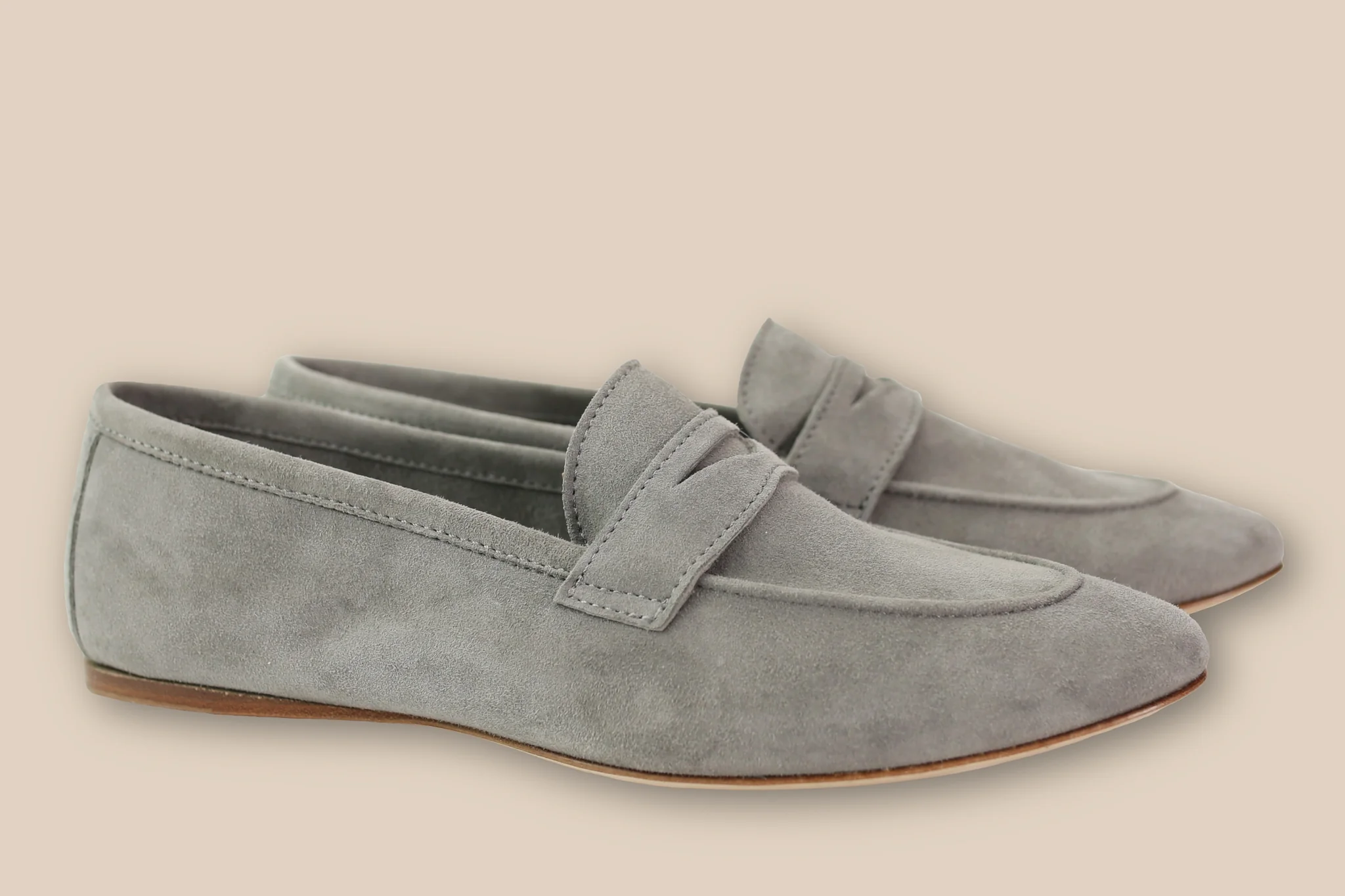 Unstructured penny loafer in soft suede.