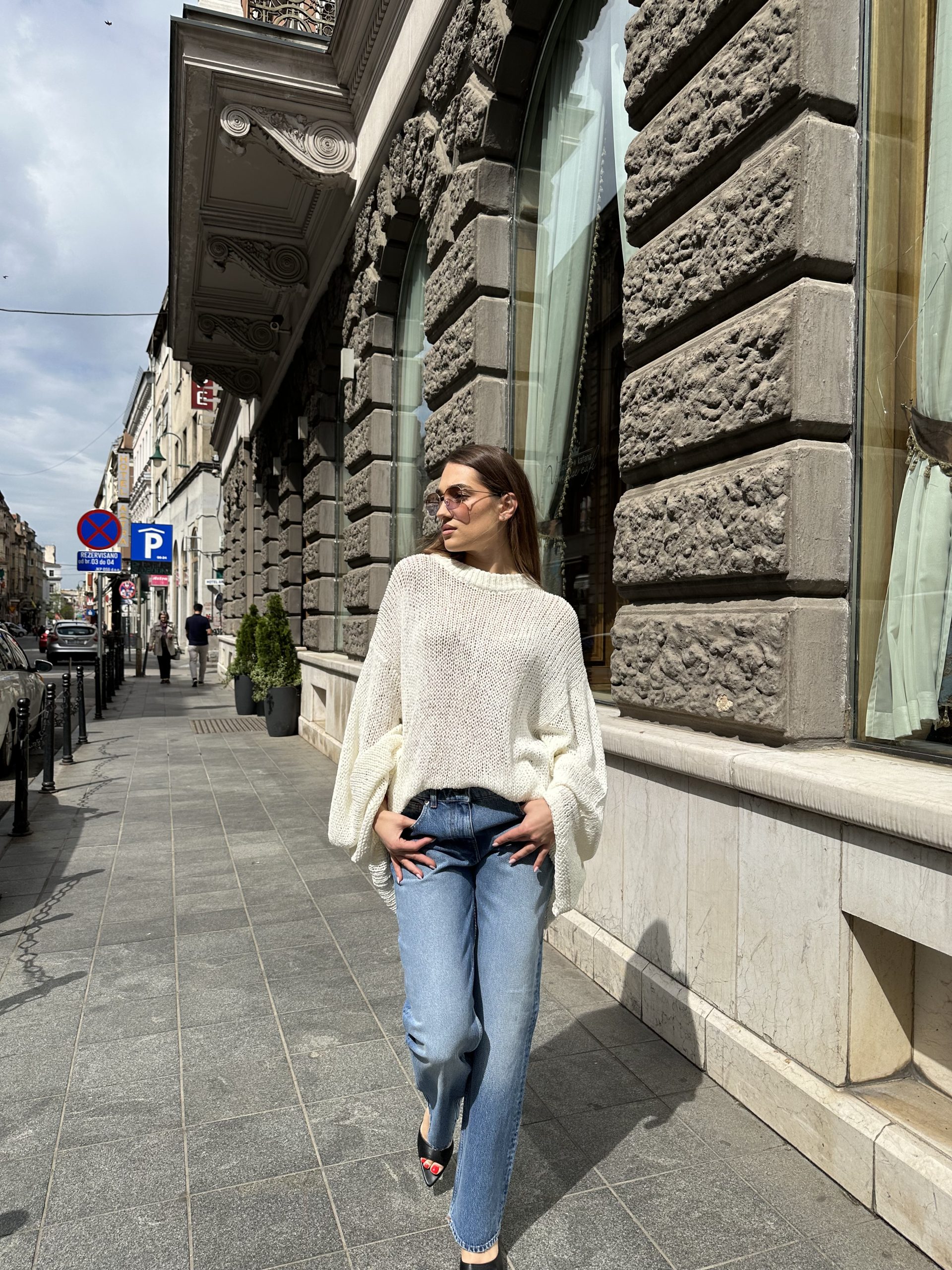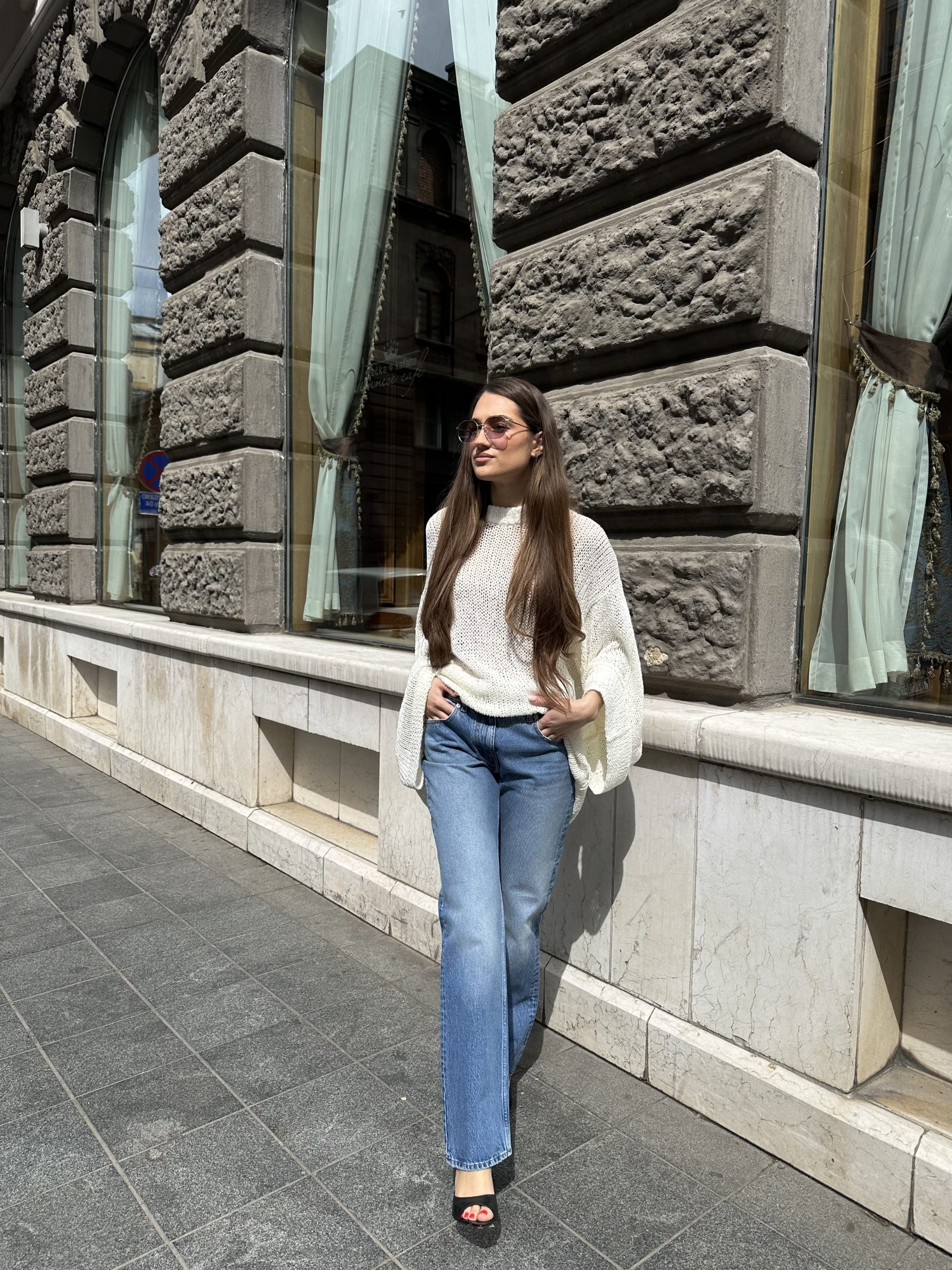 The Darcy Distressed Jeans feature a low-to-mid waistline with slightly wider, longer straight legs. Crafted from 100% organic cotton denim, they are finished with five pockets and embroidered monogram detail on the back pocket.